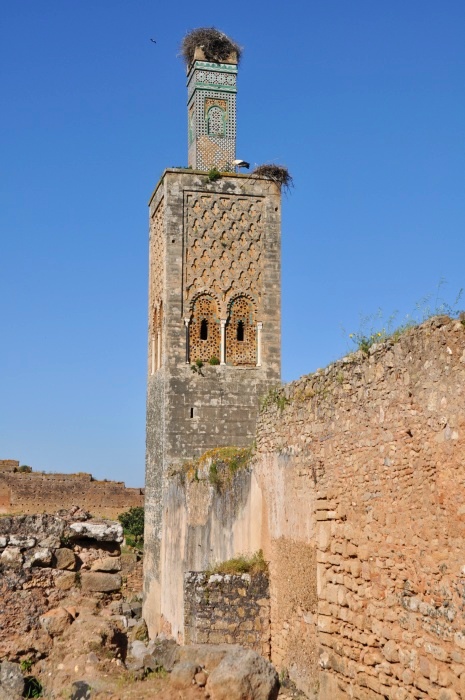 Za monumentálnou bránou, ktorú nechal postaviť merenidský sultán Abu al-Hassan v 14.storočí sa objaví pahorok posiaty menšími aj väčšími kamennými ruinami. Je to jednoduché. Ak sa človek pozrie pred seba, to čo uvidí na ľavej strane patrilo kedysi Rimanom a ruiny na strane pravej nesú rukopis islamskej architektúry. Priestor niekdajšieho mesta vymedzujú mohutné kamenné hradby tiahnuce sa pahorkom smerom k modernému Rabatu. Na jar je Maroko krásne zelené a z trávy tu vyrastajú rímske základy domov, no objavia sa tu aj také, ktoré kedysi patrili Jupiterovmu chrámu či kúpeľom. Medzi naukladanými kameňmi dokonca vyčnieva aj kanalizácia a väčší priestor predstavoval srdce rímskeho mesta v podobe Fóra. Pôsobivejšie ruiny predstavuje islamská časť Chellahu. Najkrajšou stavbou je bez akýchkoľvek pochýb typický, hranatý minaret, ktorý sa svojou výzdobou podobá na Hasanovu vežu stojacu oproti kráľovskému mauzóleu. Tu neďaleko minaretu leží hrobka panovníka merenidskej dynastie Abu al-Hassana a jeho manželky. Panovník síce zomrel po 17 rokoch vlády v pohorí Vysoký Atlas, ale prial si, aby ho pochovali v Chellah. Na vrchole minaretu sedí bocianie hniezdo a niekoľko bieločiernych vtákov poletuje okolím. Dnes vládu nad Chellahom prevzali bociany, ktoré majú v celom areáli viac než tucet hniezd. Moslimovia ich považujú za posvätné vtáky, pretože keď si bocian kľakne do hniezda, spraví pohyb ako moslim pri modlení a preto ich nikto nevyháňa. Je krásne sedieť uprostred ruín, ponorený do ticha mŕtveho mesta a počuť ako sa odrazu ozve ťažký trepot bocianích krídel.